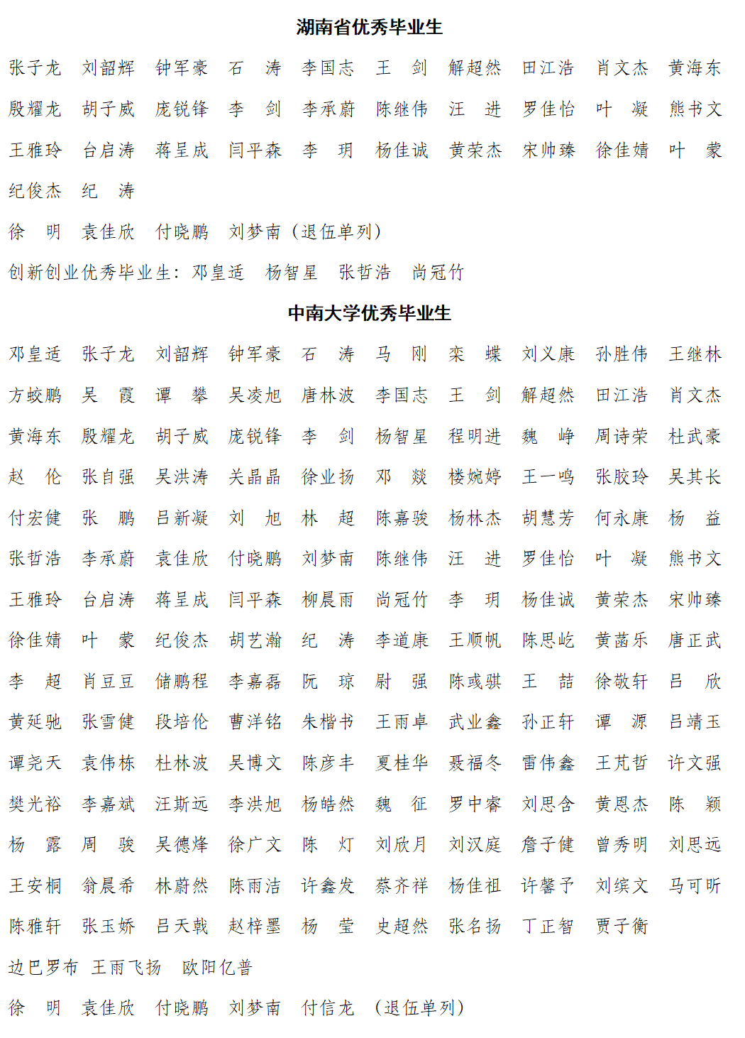 公示期内如有异议,请联系:本科世纪楼1312办公室周老师:0731-82655631;研究生世纪楼1311办公室姜老师:0731-82655201。