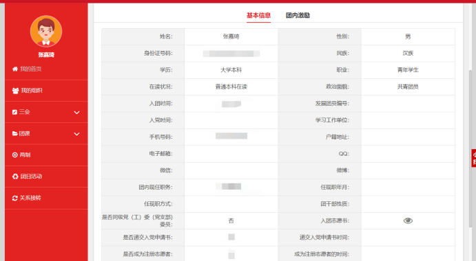 3.需要补办团员证的同学,由团支书前来上交团员证时一并将材料上交,所需材料为补办团员证同学的一寸免冠近照一张(背面备注学院、专业班级、姓名)、补办团员的智慧团建信息截图。